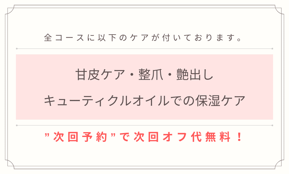 ※ 通常のジェルネイルは、ご自身でのケア(爪切り)は推奨されていません。