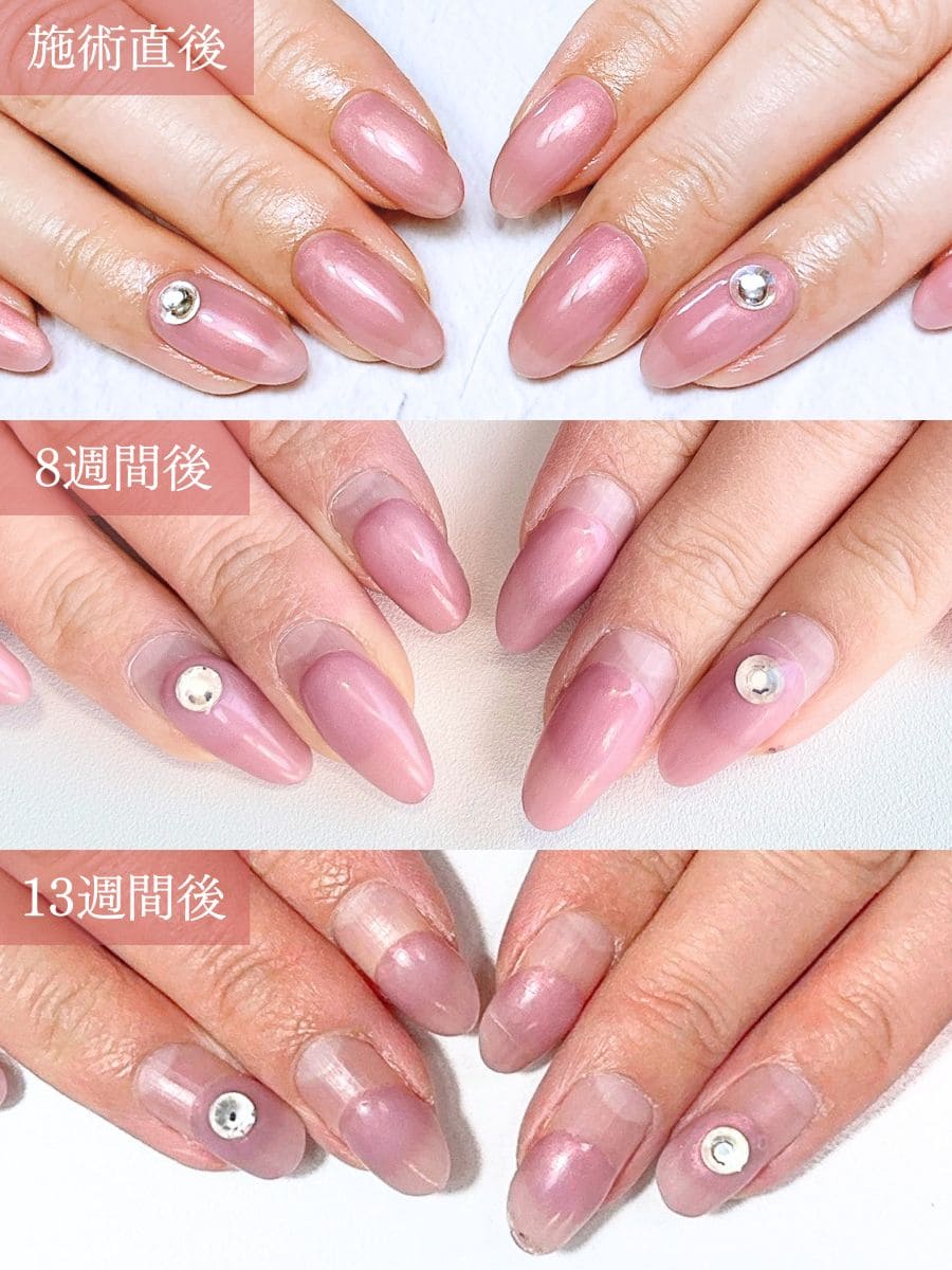 しかし、当サロンのジェルネイルは、隙間なく密着し長持ちするため、安心してお手入れいただけます。