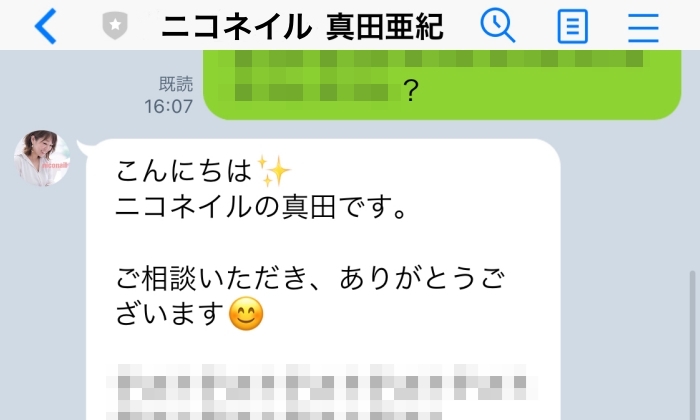 施術は手際が良く丁寧で、爪の形や長さの確認、色やデザインに関しても試し塗りやアドバイスをしてくださるので迷っていても大丈夫です。