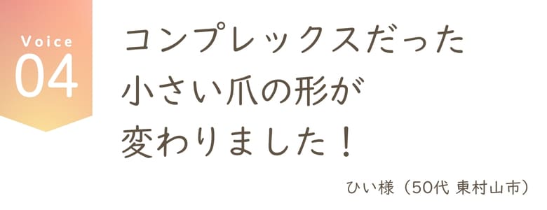 また、小さい爪がコンプレックスでしたが、爪の形が変わってきたことや、お休みをいれなくても爪が全然傷まないことも、とても嬉しいです☺️