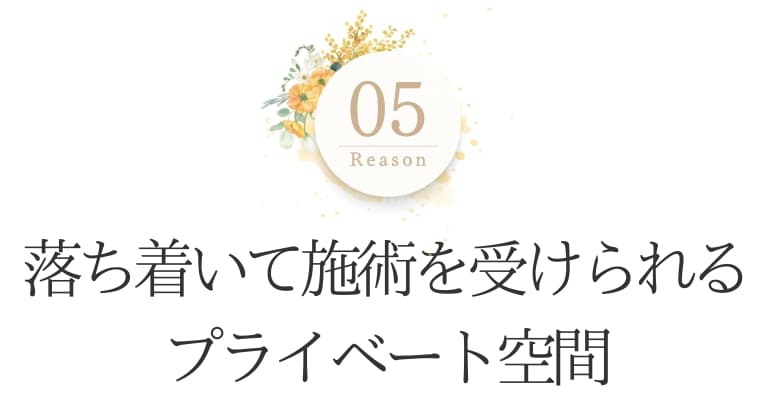 また、サロン内は完全個室となっておりますので、周りの目を気にせず、リラックスしてお過ごしいただけます。