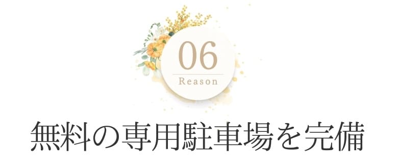 駐車場探しの手間や料金の心配がないので、気持ちにゆとりを持ってご来店いただけますと幸いです。