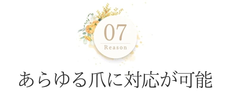 当サロンでは、長年の経験と技術で、様々な爪の悩みを解決してきました。